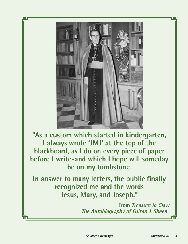 Fulton J. Sheen St. Mary’s Messenger – Summer 2022 Share this: Click to share on X (Opens in new window) X Click to share on Facebook (Opens in new window) Facebook Like Loading... Related Leave a comment Cancel reply Δ
