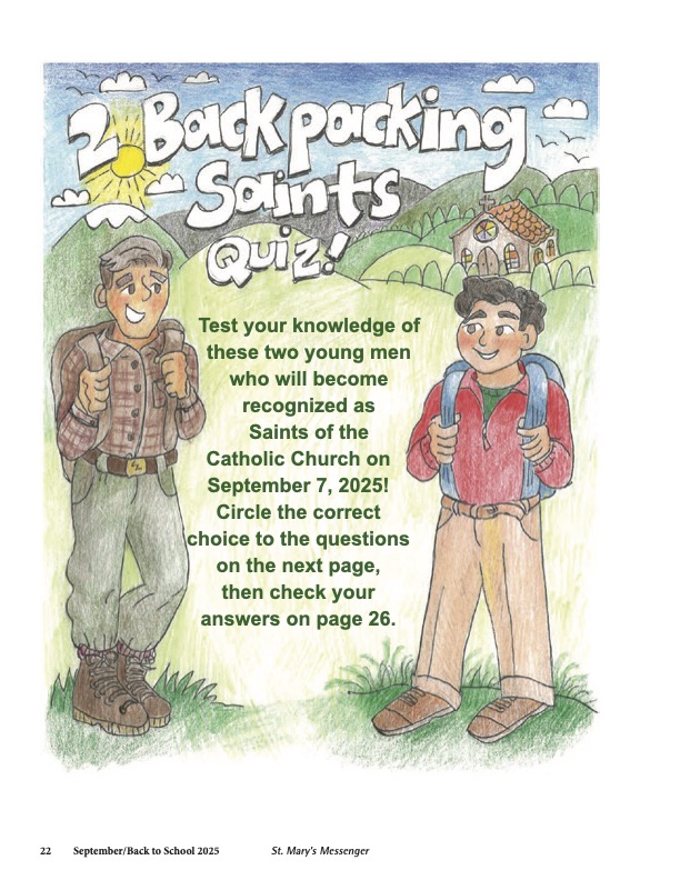 2 Backpacking Saints St. Mary’s Messenger – September/Back to School 2025 Share this: Click to share on X (Opens in new window) X Click to share on Facebook (Opens in new window) Facebook Like Loading... Related Leave a comment Cancel reply Δ
